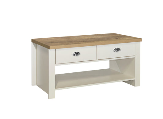 Highgate 2 Drawer Coffee Table Cream & Oak