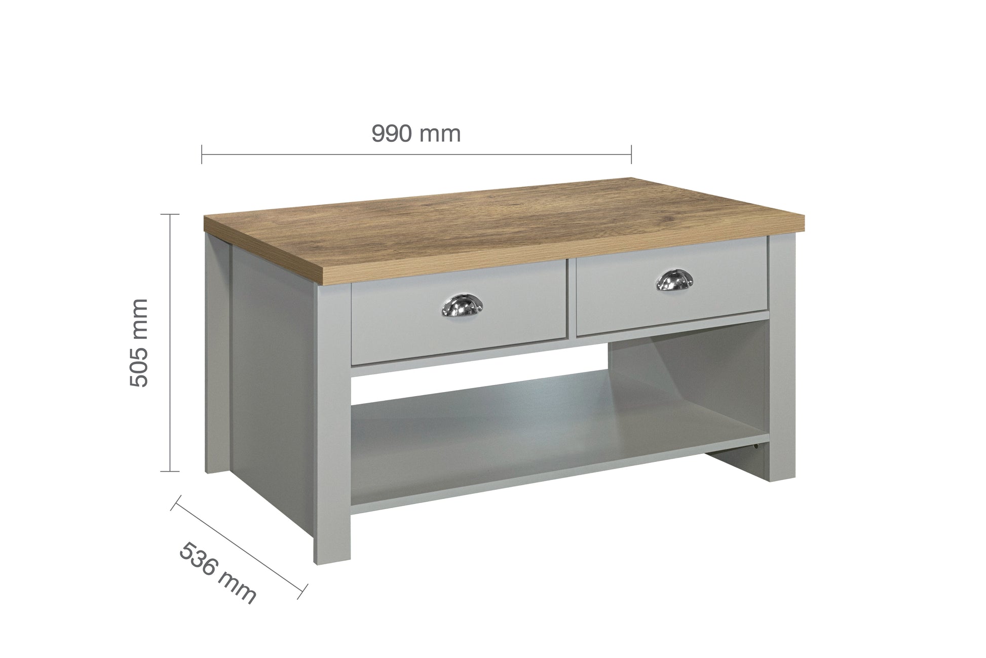 Highgate 2 Drawer Coffee Table Grey & Oak