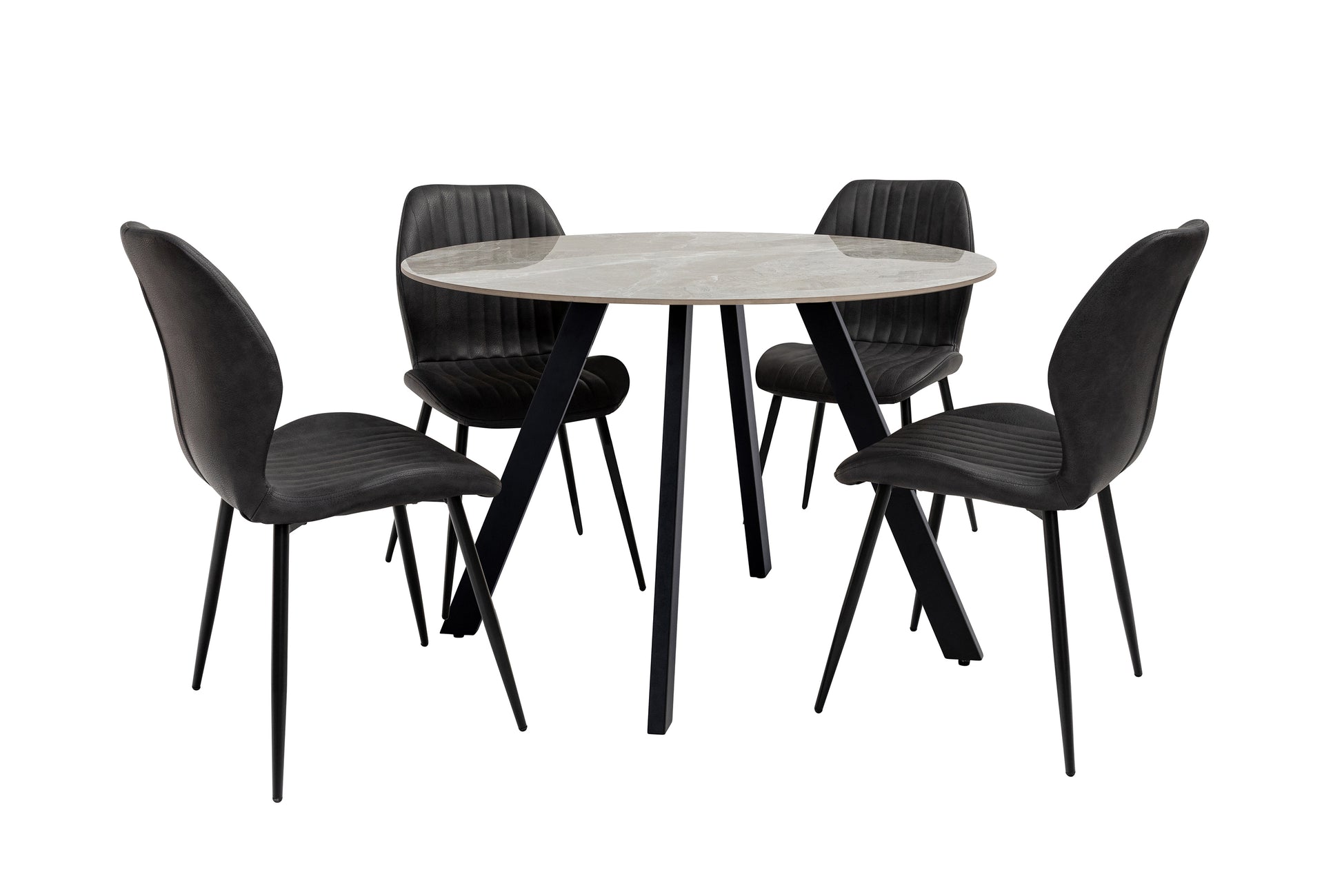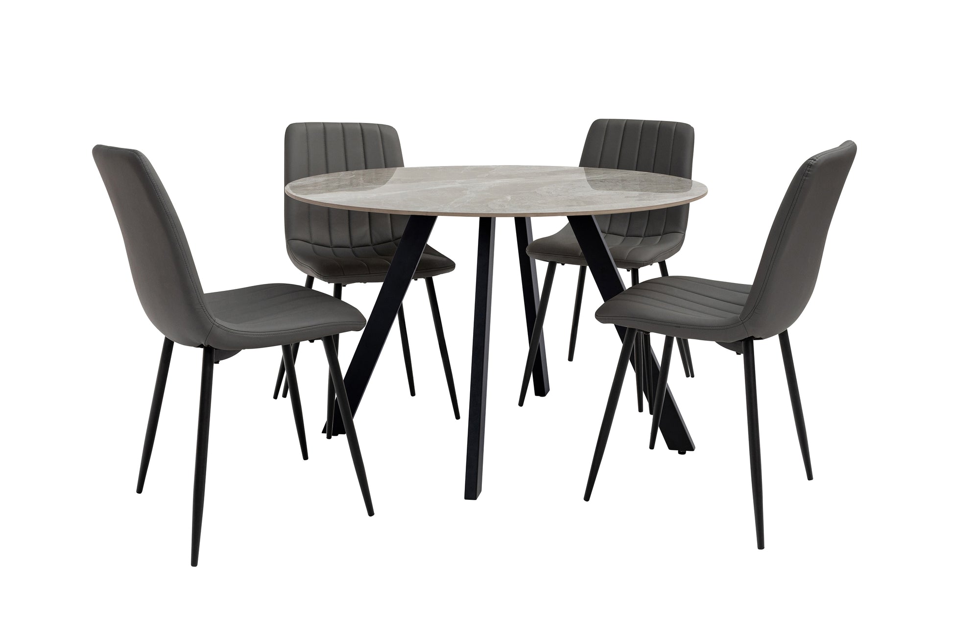 It elevates any kitchen or dining space with its sleek, modern design. Featuring an Italy Grey high-gloss sintered stone top, it boasts a striking and unique grey marble pattern that adds character and style. The table is beautifully complemented by black powder-coated steel legs, offering durability and an industrial edge.